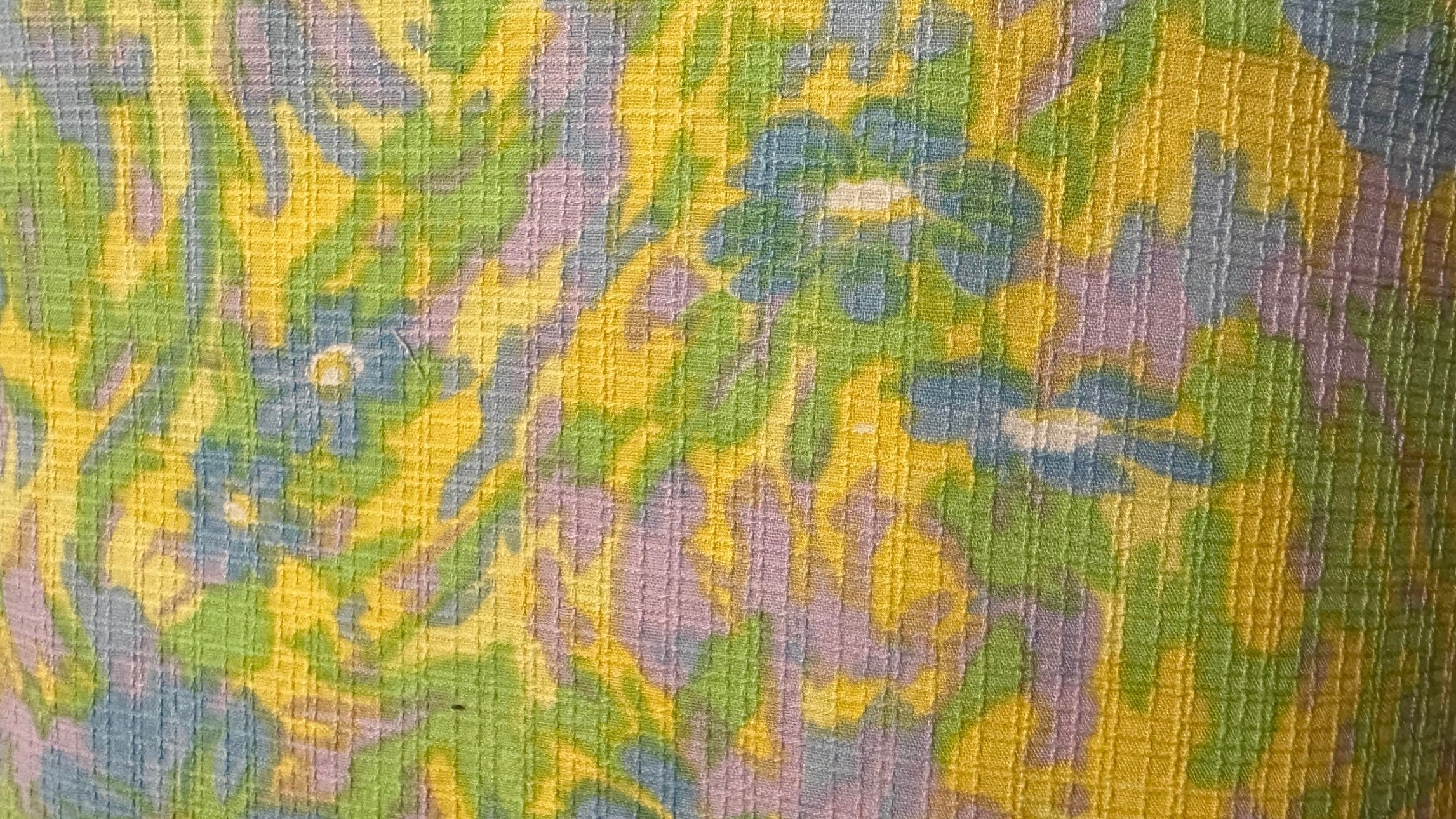 1 ½ yards of this beautiful slightly ribbed vintage fabric. Interesting retro pattern with a dreamy floral design.