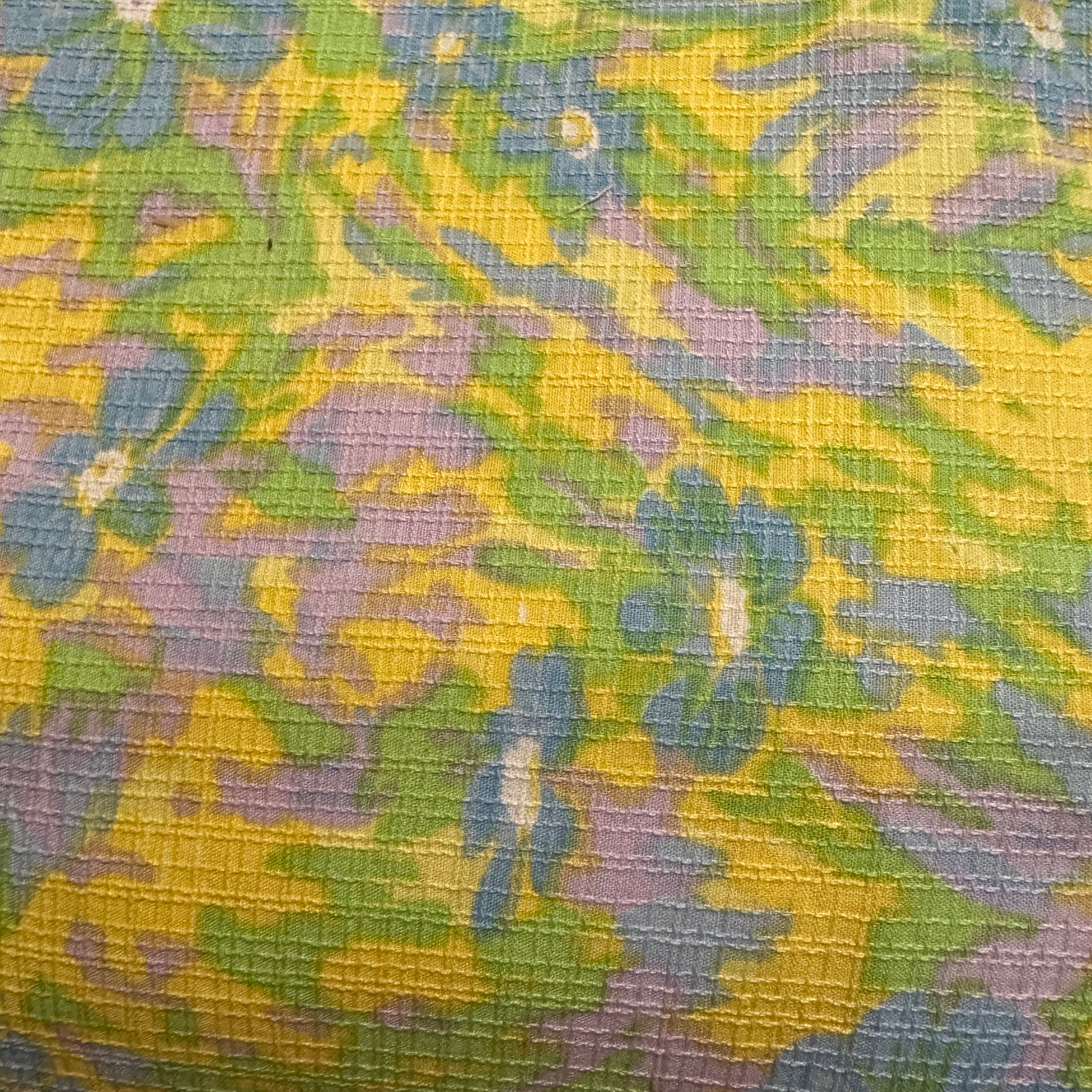 Yellow, blue and purple abstract floral vintage fabric - 1.5 yards