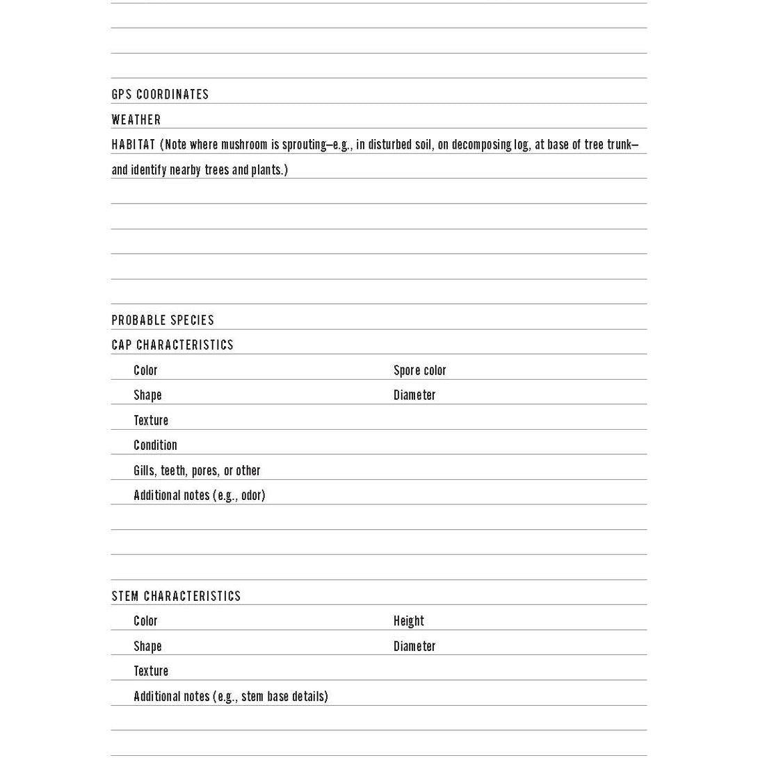 Expert and novice mushroom hunters alike will enjoy using this journal to track all their fungal finds. The Mushroom Logbook includes space to collect important data points, such as cap and stalk characteristics, nearby plants and wildlife, habitat, weather, and other notes. The textured cover will stand up to the elements and has a metallic decorative title and Morel mushroom icon to draw the eye.