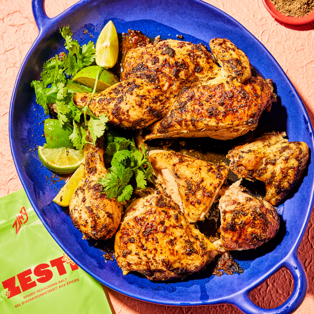 Zesti is our ode to Jamaican jerk spice. It is bright, citrusy, and floral — spice forward with a mild heat.