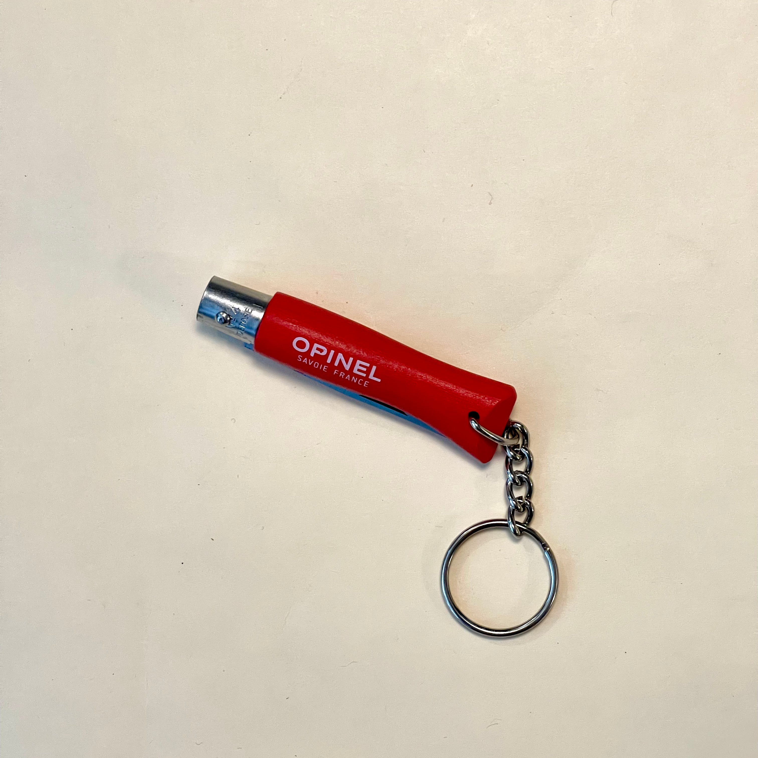 5cm stainless steel folding blade with a tinted and varnished hornbeam handle and keyring.
