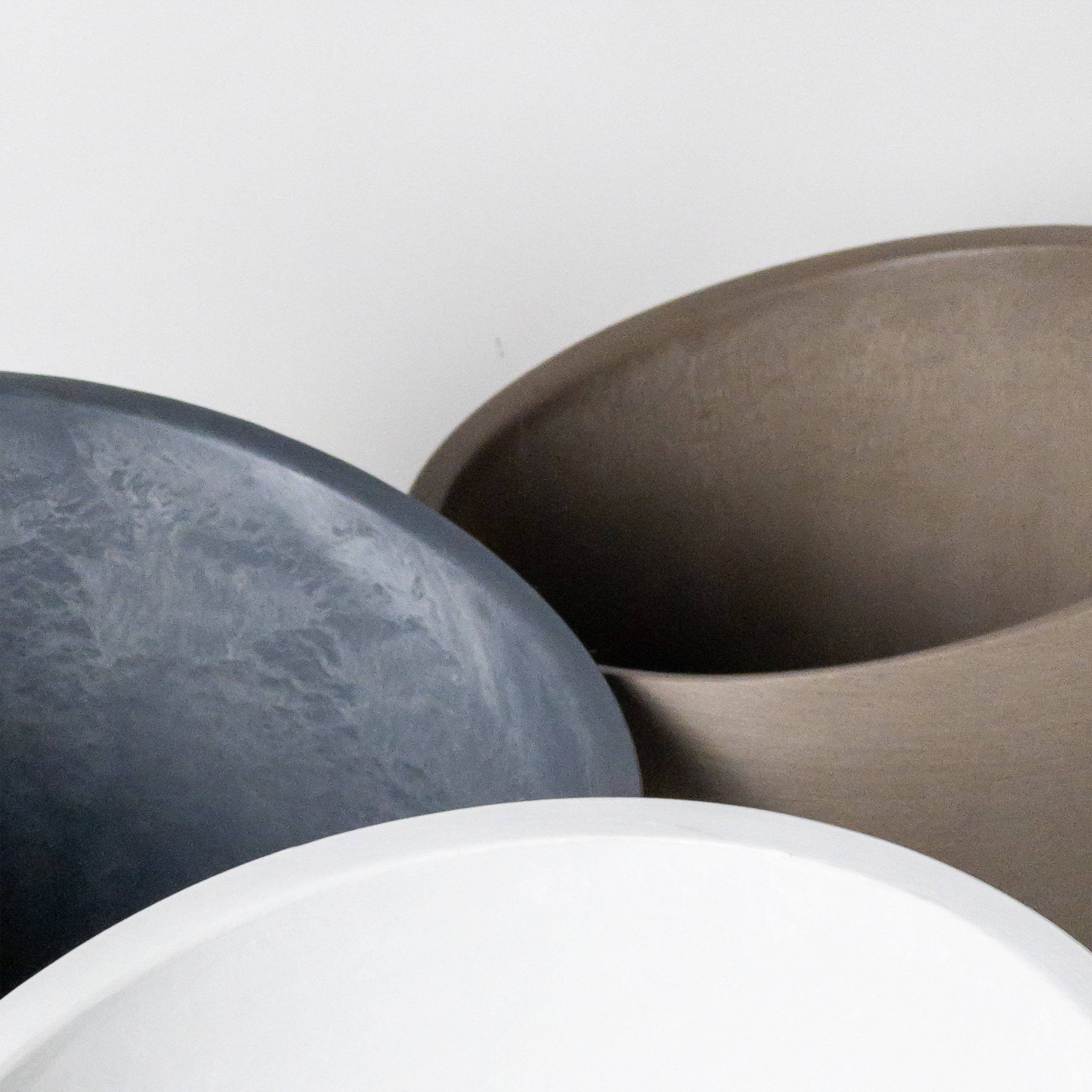 These planters offer a modern update to the traditional earthy tones. Elevate your aesthetic, and add a unique contrast to your plant collection. 11” planter pots come in 3 different colorways and 2 finishes. Each comes with a drainage hole and plug. Perfect to place in corners and entryways of your home. Made with recycled plastics, the finished product is combined with materials like natural stone and wood to completely change the nature of plastic into a green composite material. As each planter is the result of handcrafted finishes, each item contains its own personality and unique details. Materials  * Recycled Plastic | Natural Stone | Wood Dust * Porous   * Hand Finished Details   * Drainage hole & Plug: Yes * Indoor/Outdoor Use  * Frost Proof -50C - 100C * Planter Measurements: 11.5in Width x 14in Height (11in Opening Diameter)