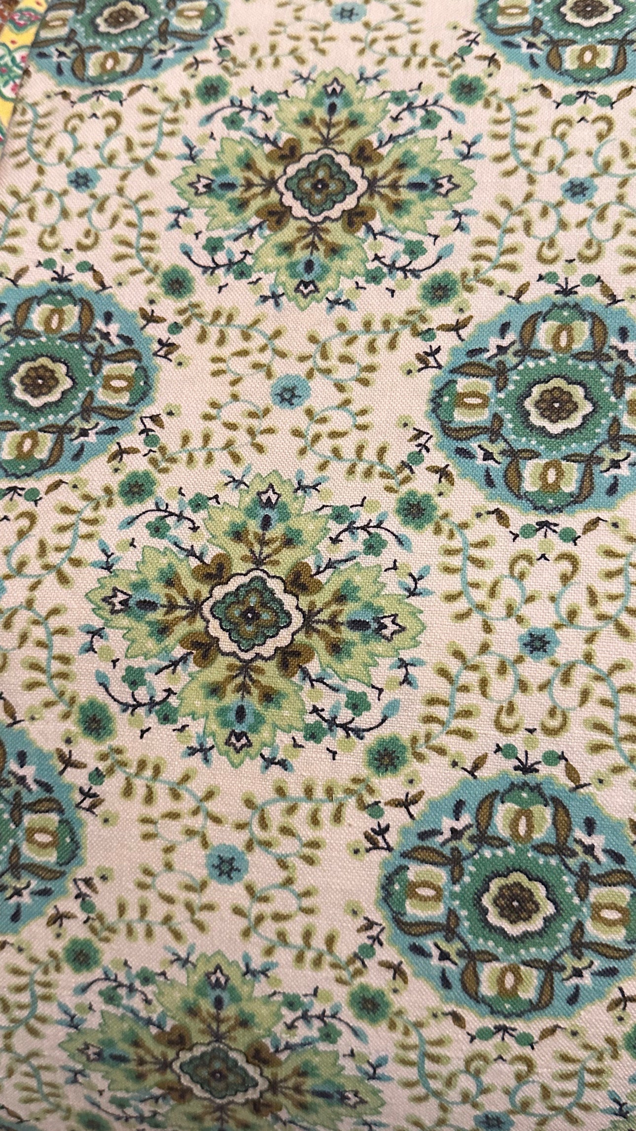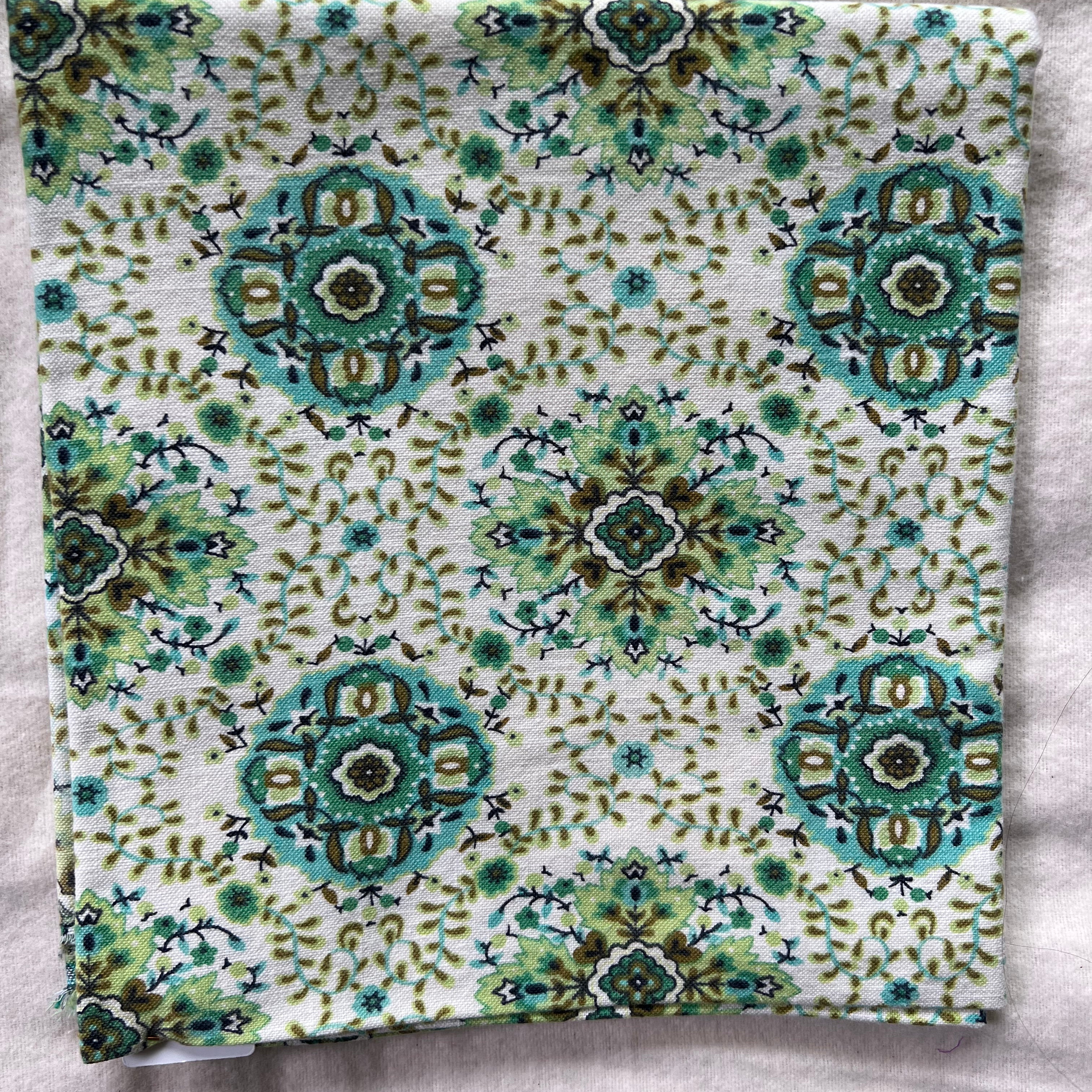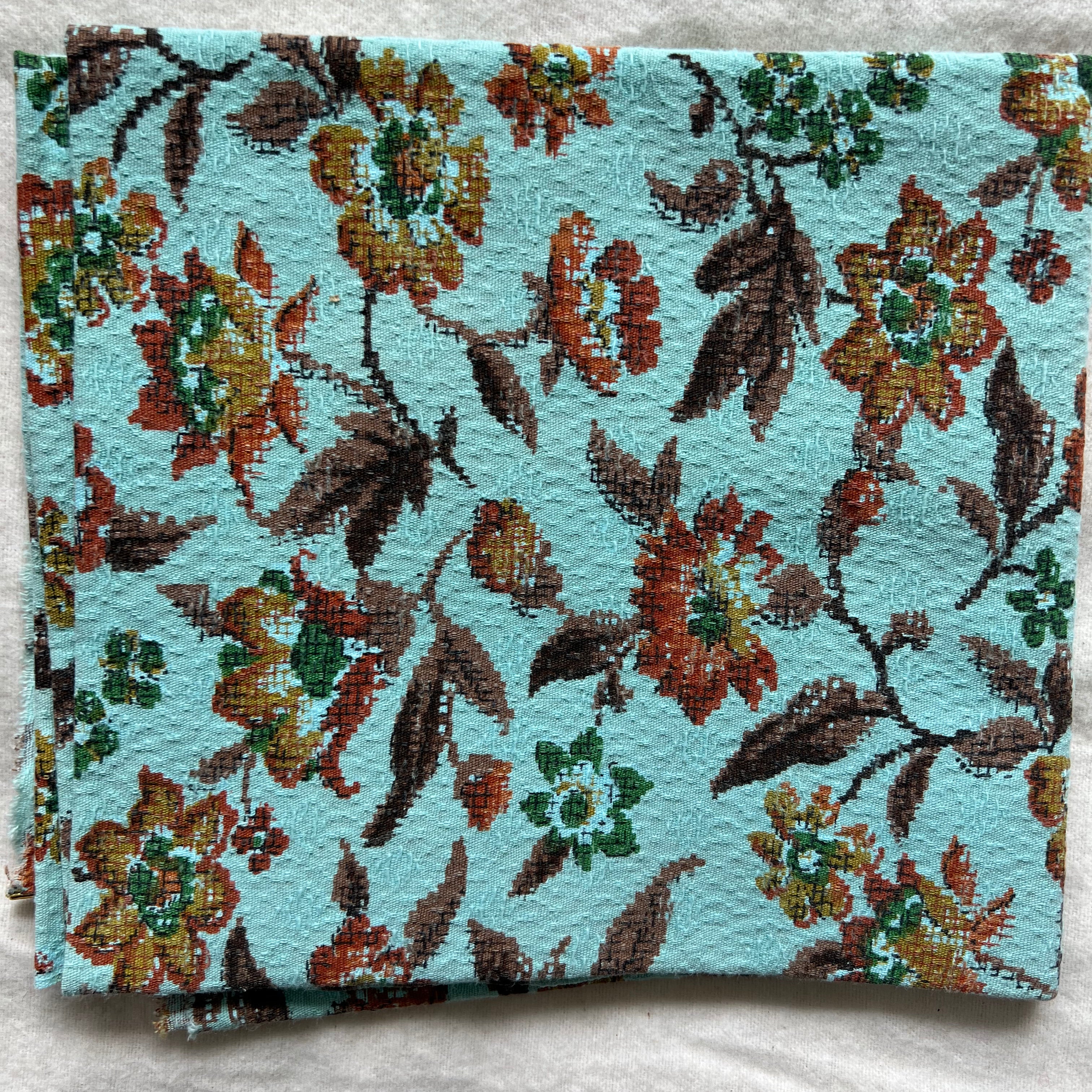1 yard of turquoise vintage fabric with floral pattern