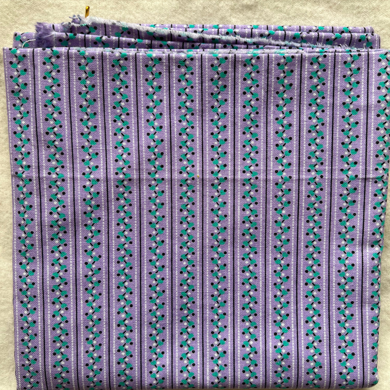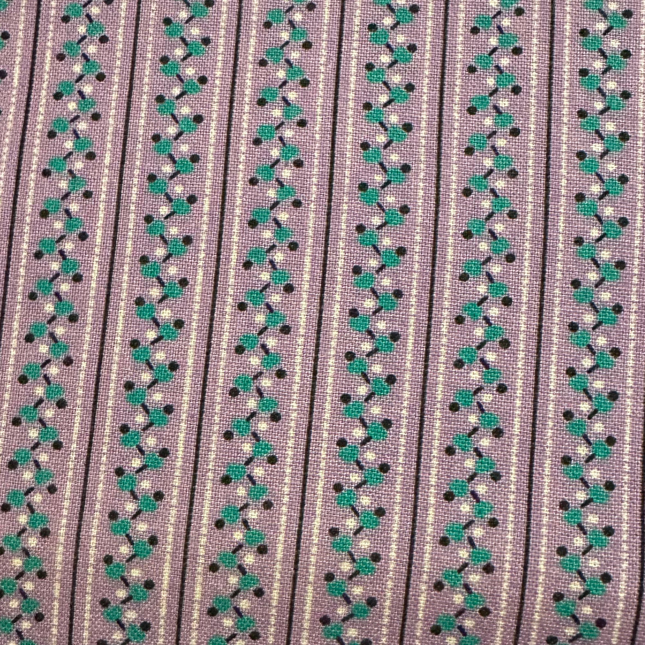 Mauve & teal patterned stripe cotton vintage fabric - 2 yards