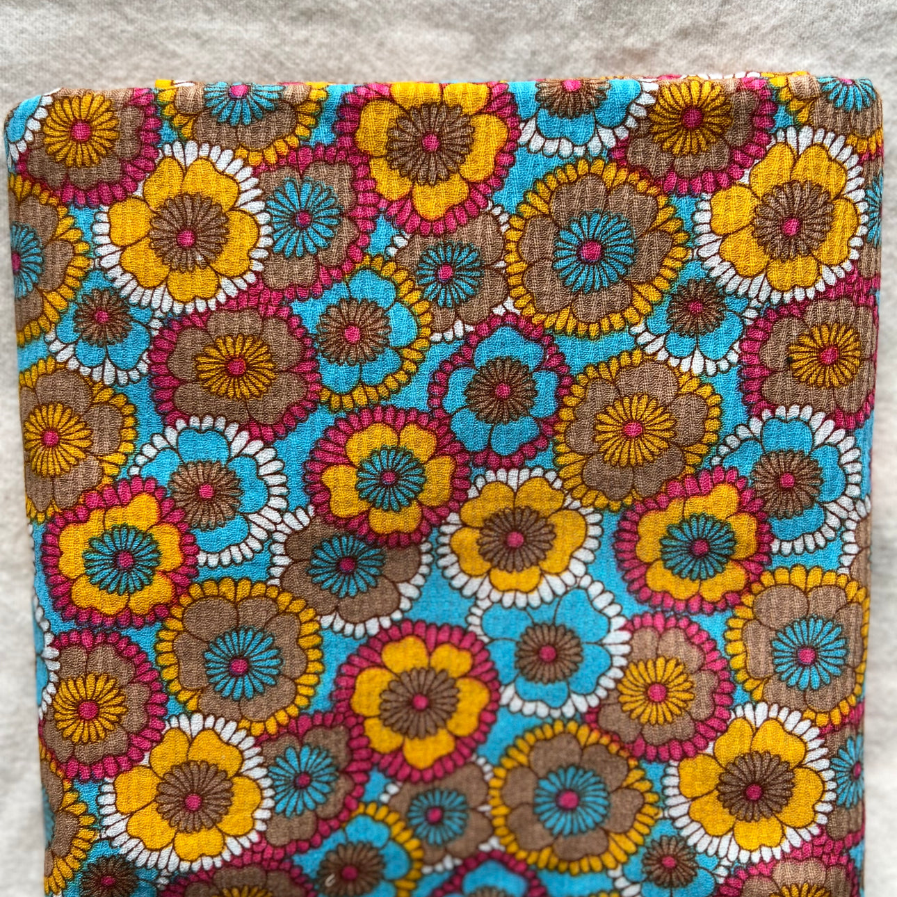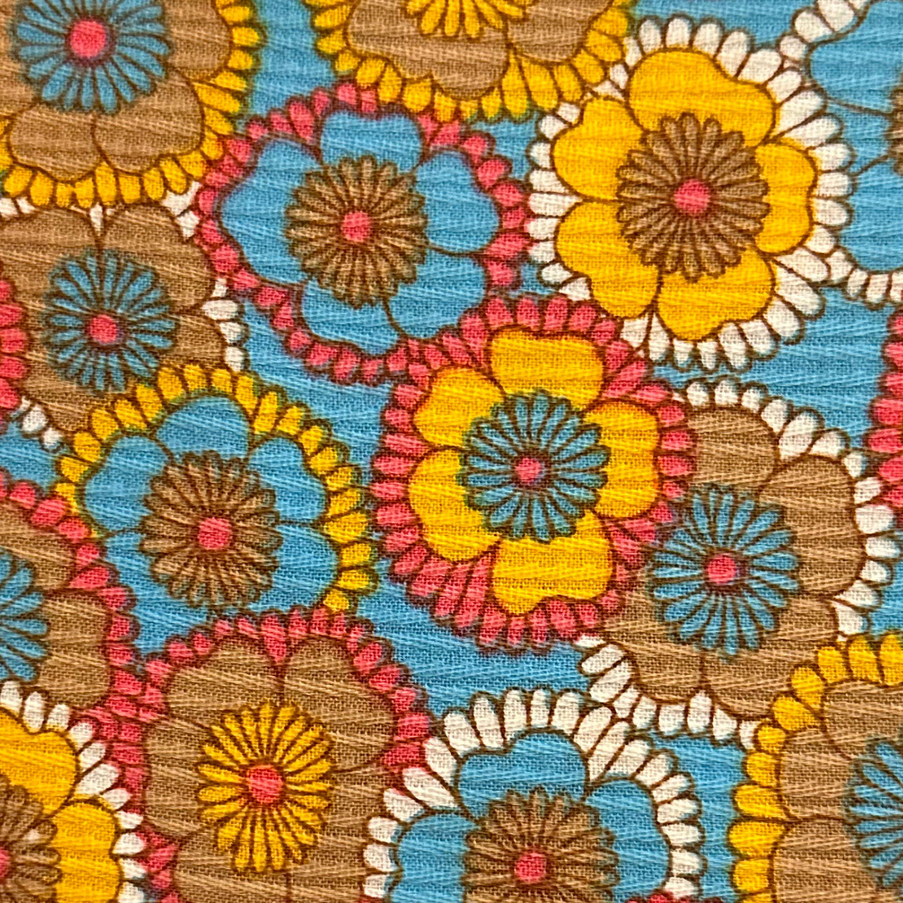 Bright 1960s floral ribbed cotton vintage fabric - 2 yards