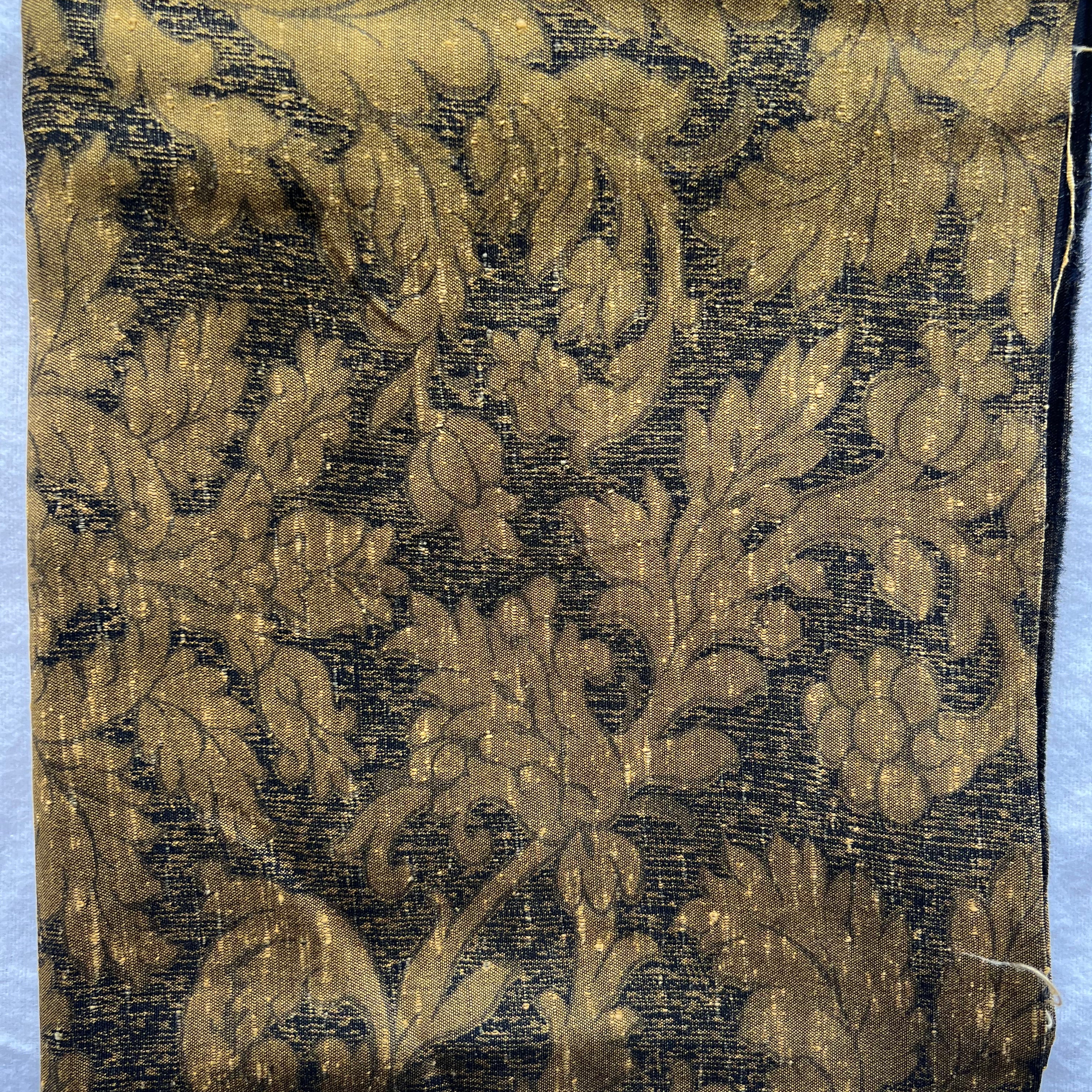 Gold silky vintage fabric with leafy damask print - 2 yards