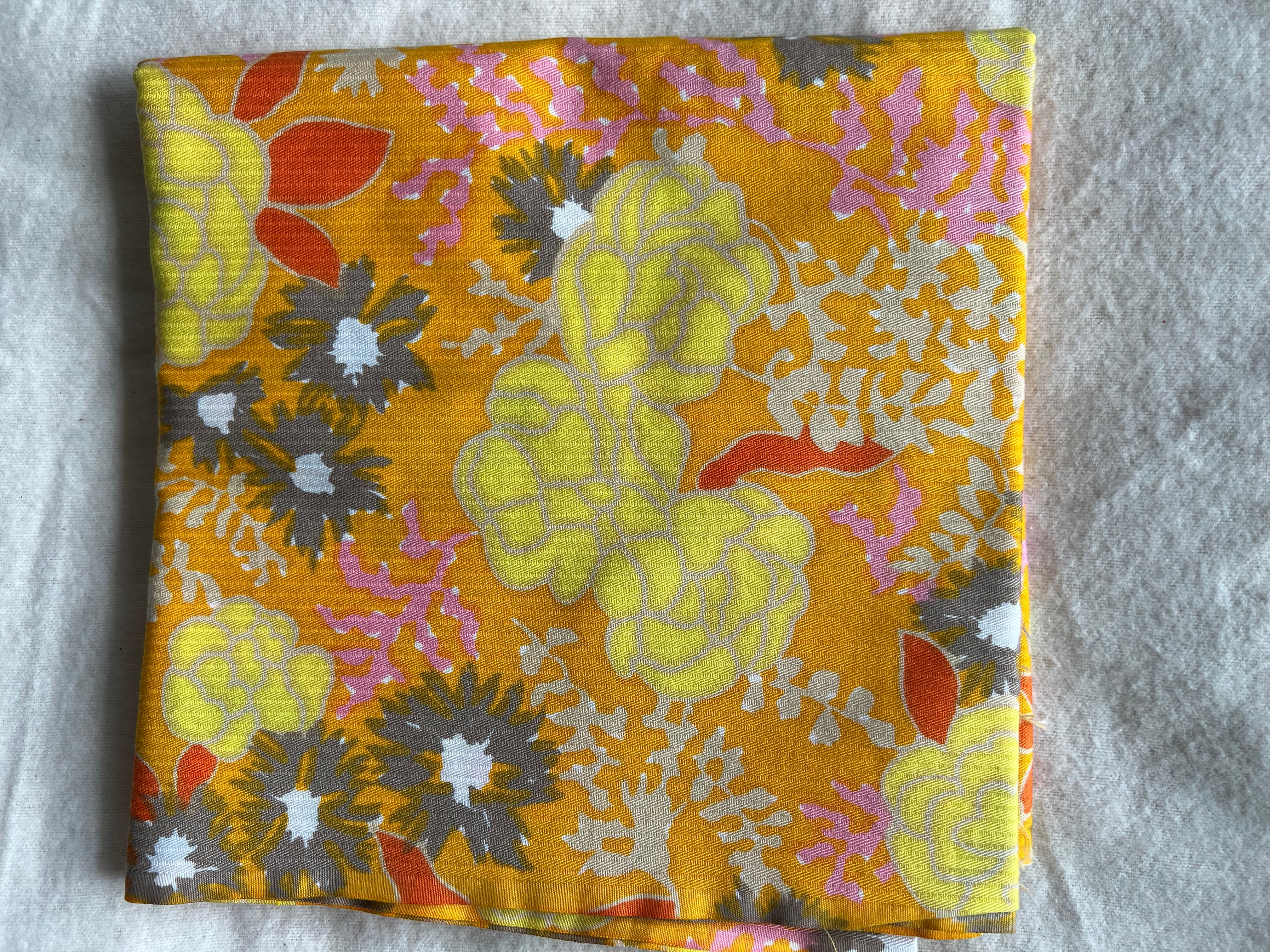 60s/70s Yellow & orange floral vintage fabric - 2 yards