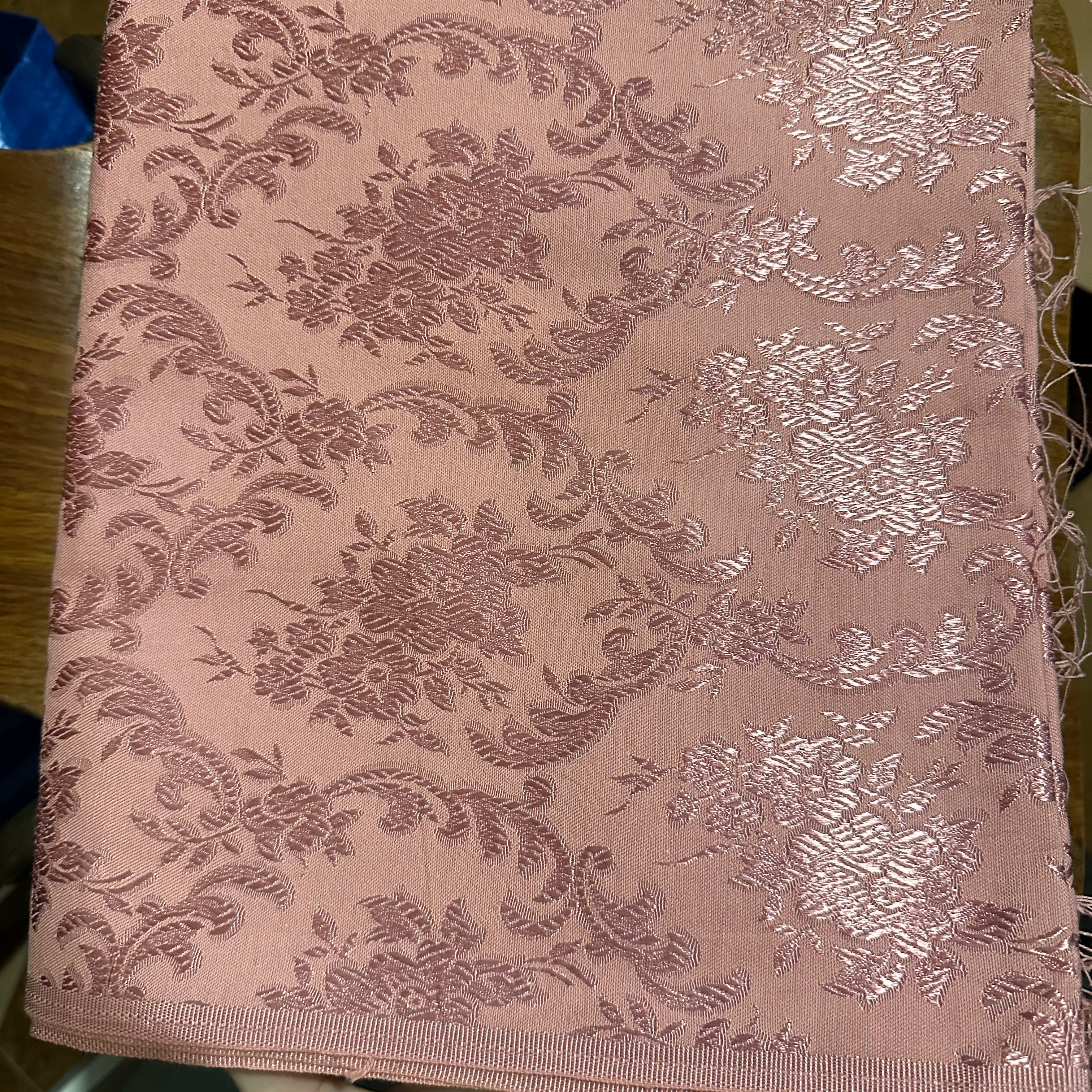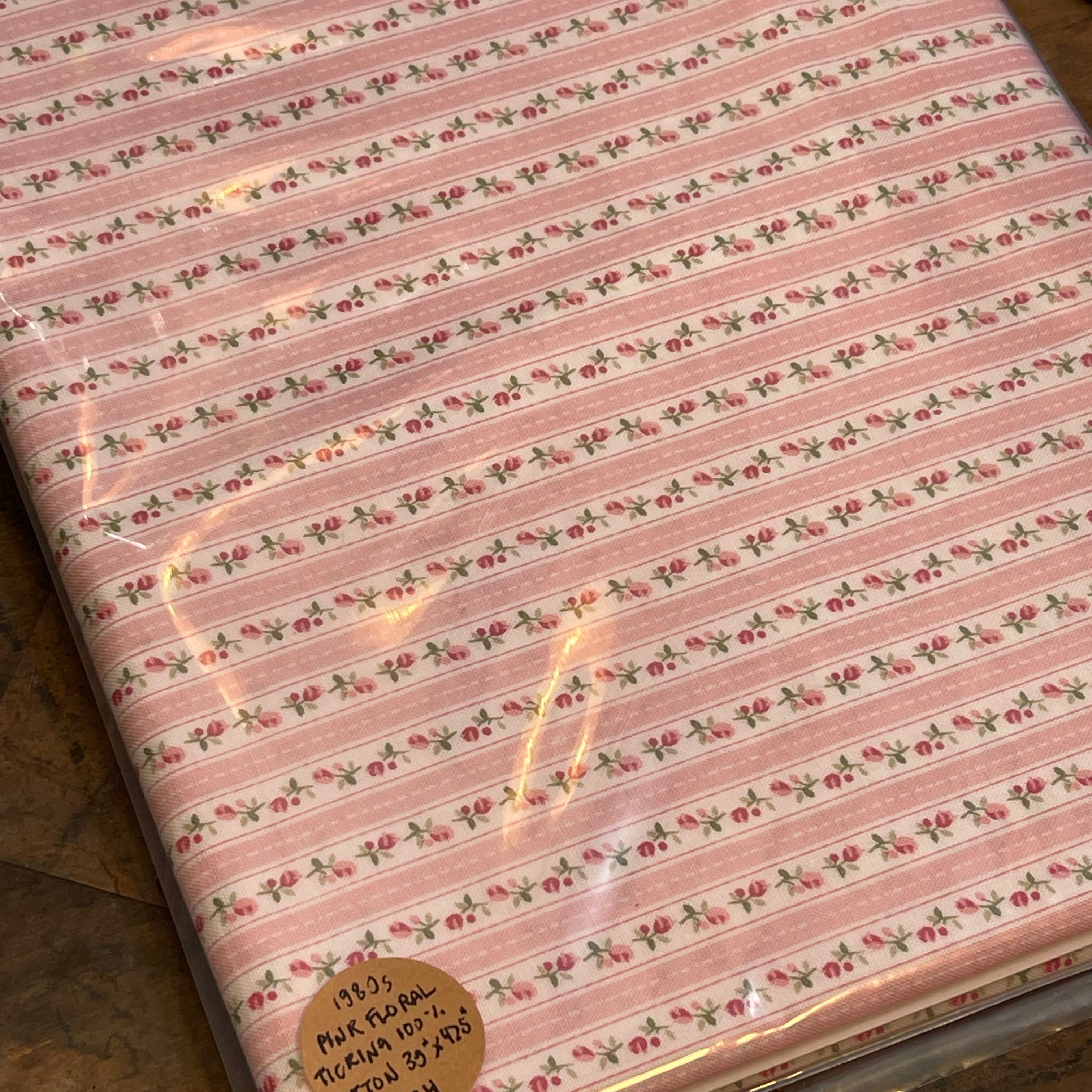 Pink silk-like vintage fabric w/floral print - 1.5 yards