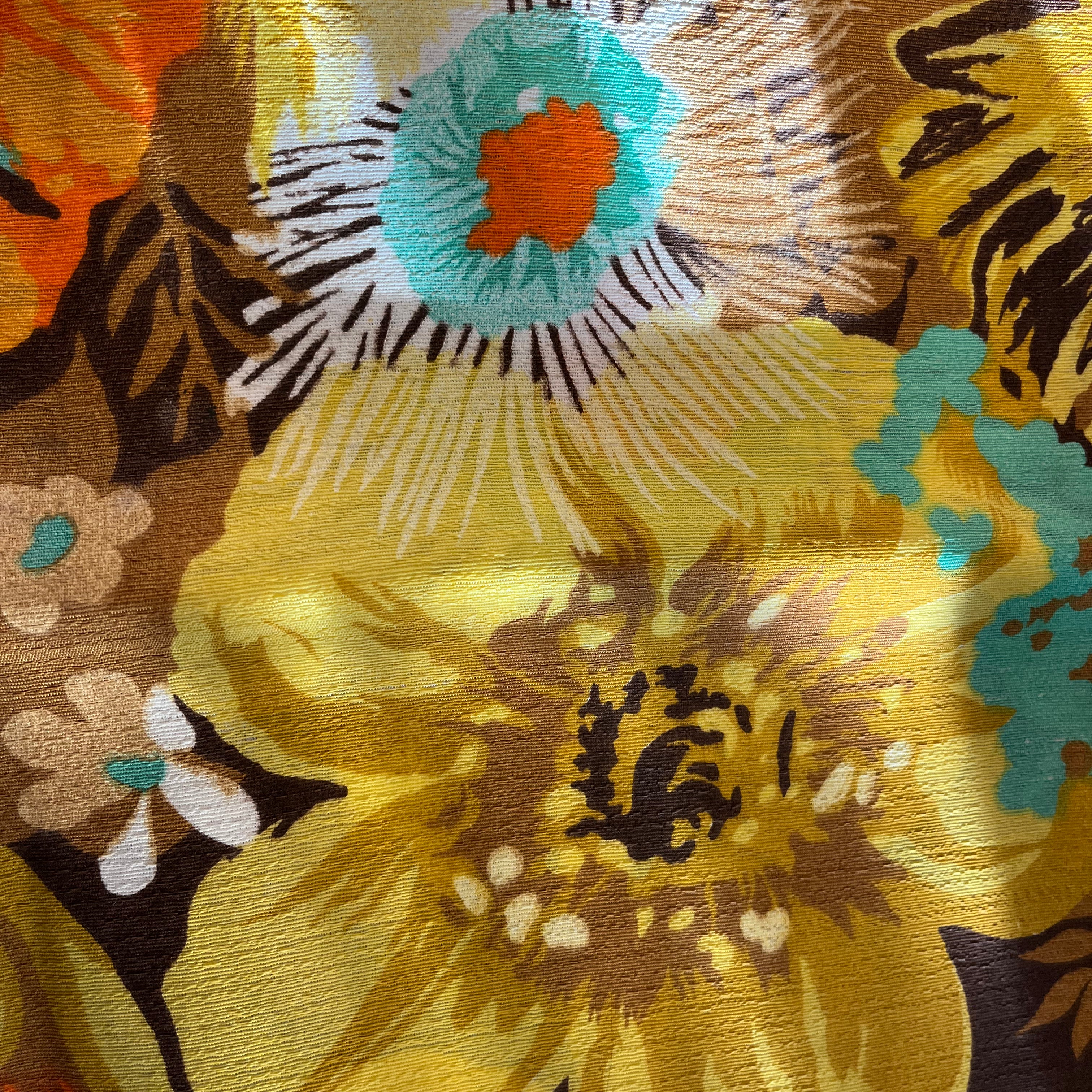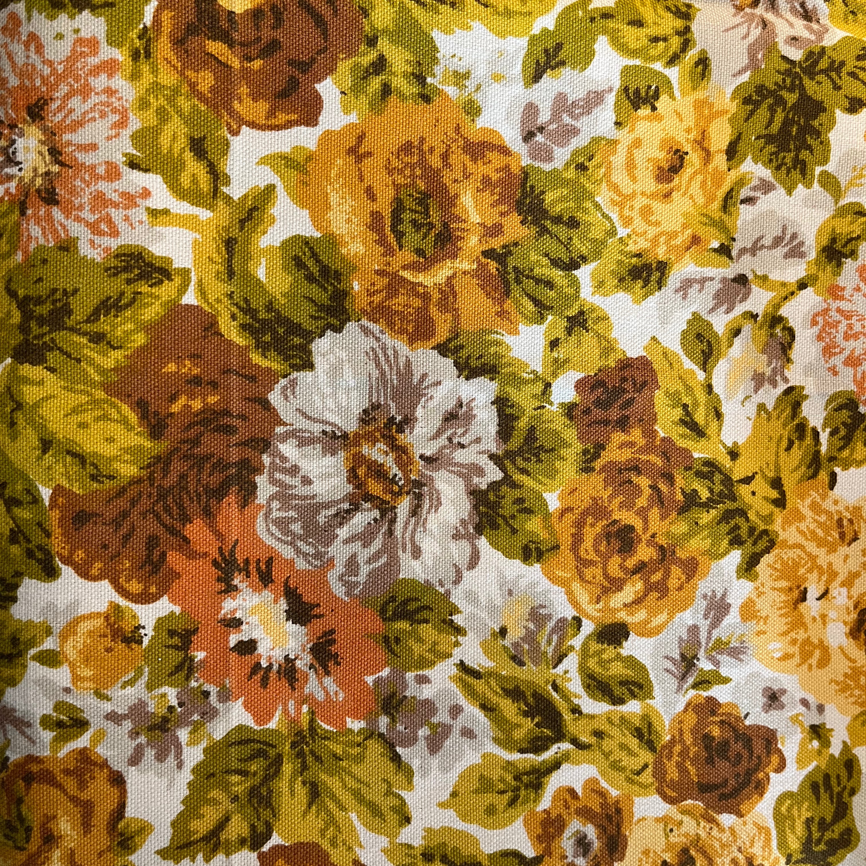 Vintage Fabric - large flowers yellow, brown, white