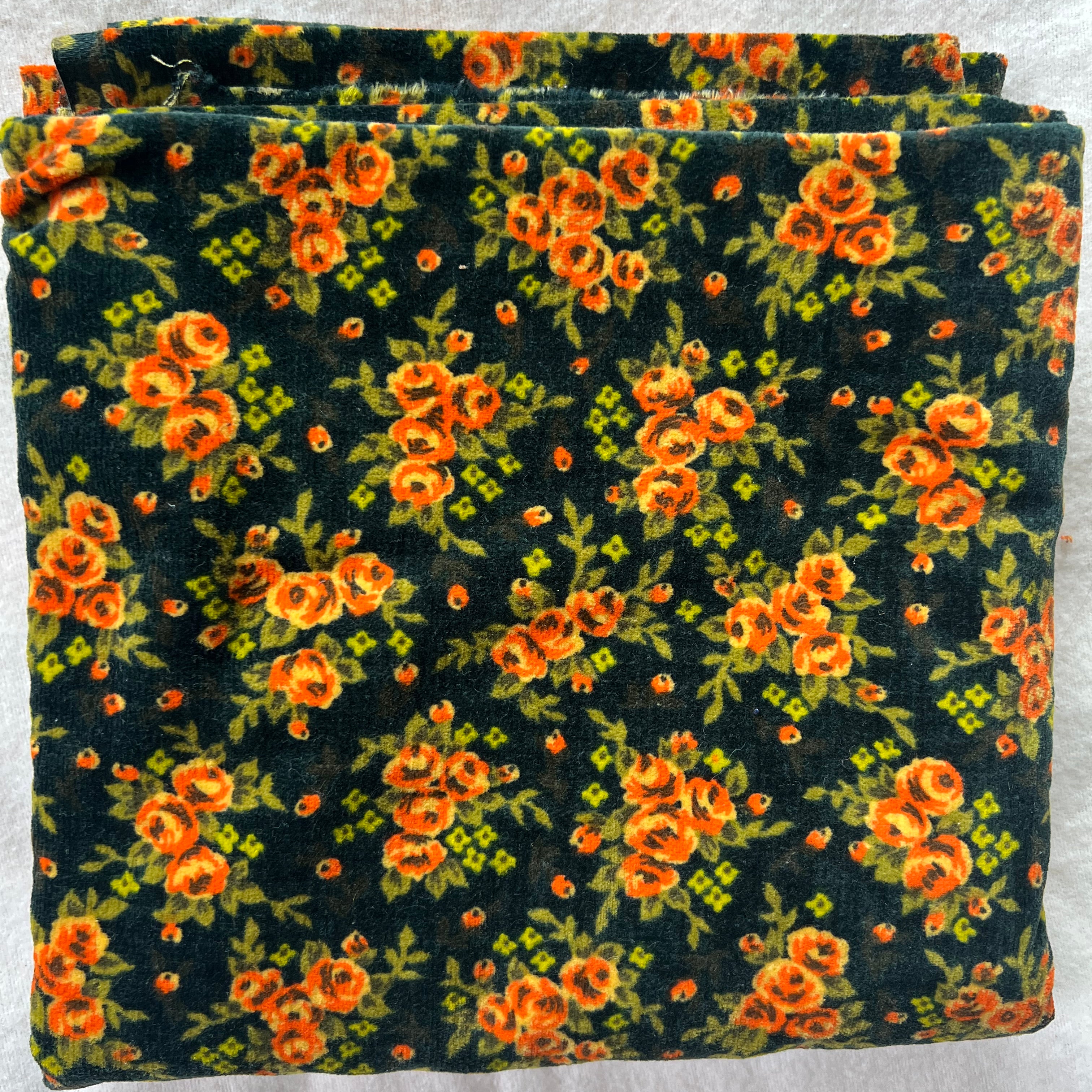 Vintage Fabric - Orange floral design on black velvet