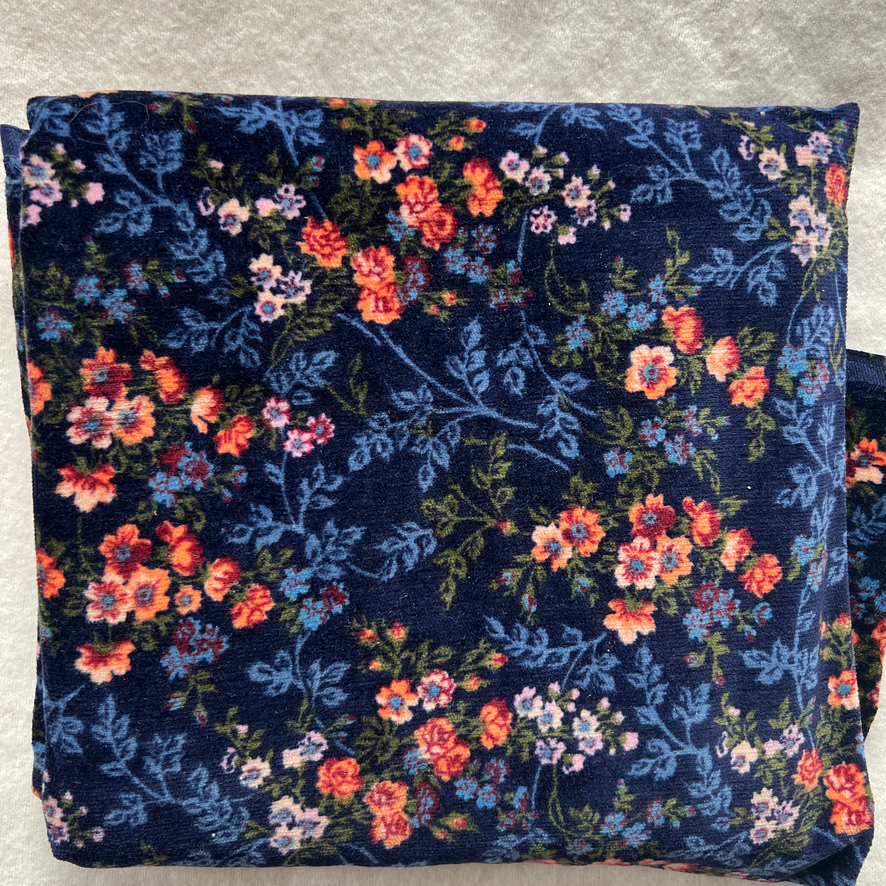 Vintage Fabric - Pink & white floral on dark blue velvet
