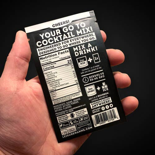"Our single-serve Old Fashioned packs take the guesswork out of mixing the perfect on-the-go or at-home Old Fashioned. Whether you are an on-the-go adventurer, an aspiring home mixologist, or just a traveler looking for a cocktail on his or her next flight, look no further than this space-saving, party in a pouch, gems of pure cocktail awesomeness. Trust us you won’t leave home without them!"