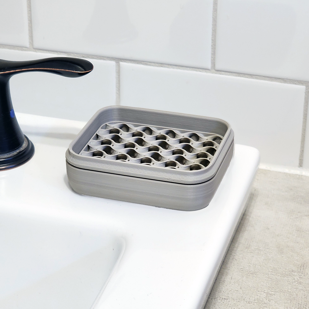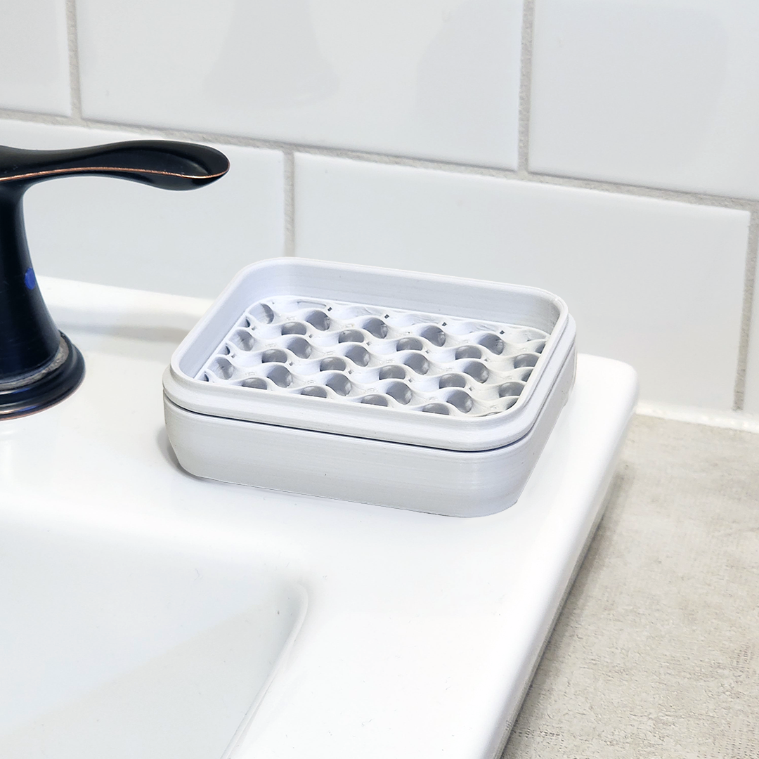 This Rectangular variant is designed to hold one bar of soap but is suitable for any bath product of up to 75mm (3") by 95mm (3-3/4") and either 30mm (1-1/8") or 45mm (1-3/4") in height.