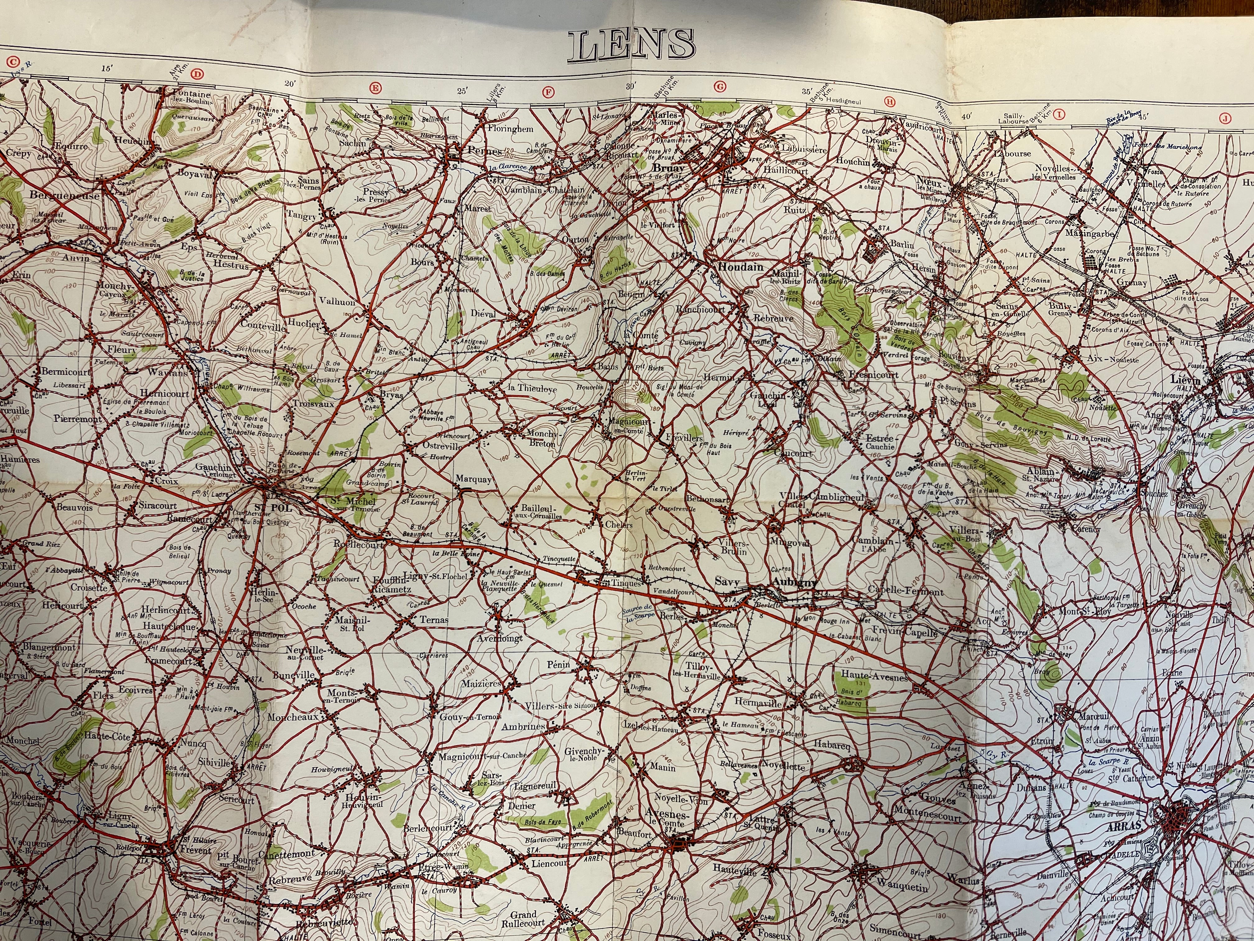 A fair condition WWI trench map, used by allied forces for navigation through trenches in specific regions.